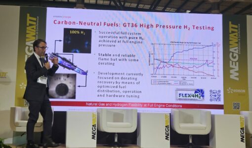 The FLEX4H2 project was presented by Federico Bonzani from Ansaldo Energia in his speech “Operational and fuel flexibility of heavy-duty gas turbines: key enablers of the energy transition” during the “Innovations in power generation” session.